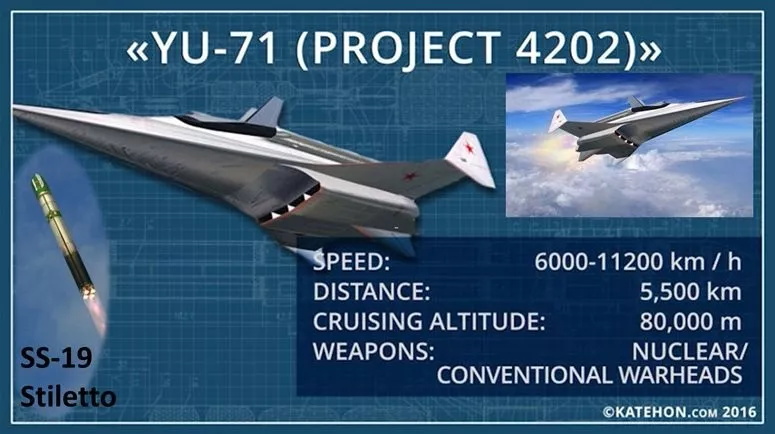 而在导弹的高超音速飞行器部分则是所谓的“Yu-71”项目,从目前披露的情况来看,该滑翔器采用了高超音速乘波体设计,进入滑翔后,其最大冲刺速度据称可以达到3.3万千米/时,均速约2.5万千米/时,换算成马赫数也就是大约20倍音速,按照俄军的说法“‘先锋’可以通过大范围的横向机动,规避反导系统拦截”,即使从其设计特征上看,此说法并无太大问题。